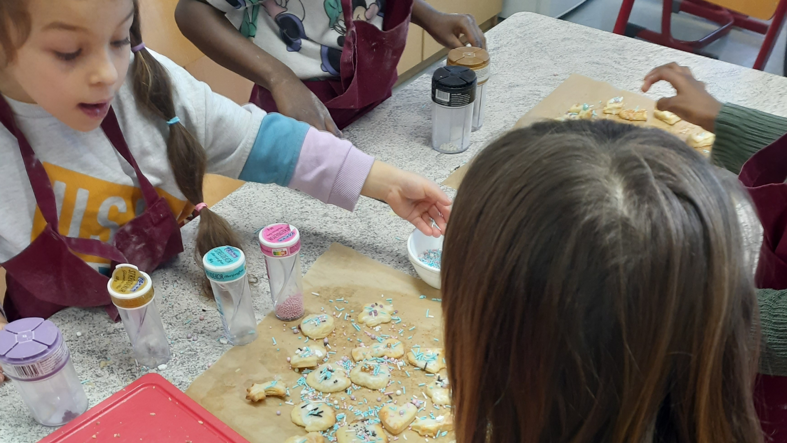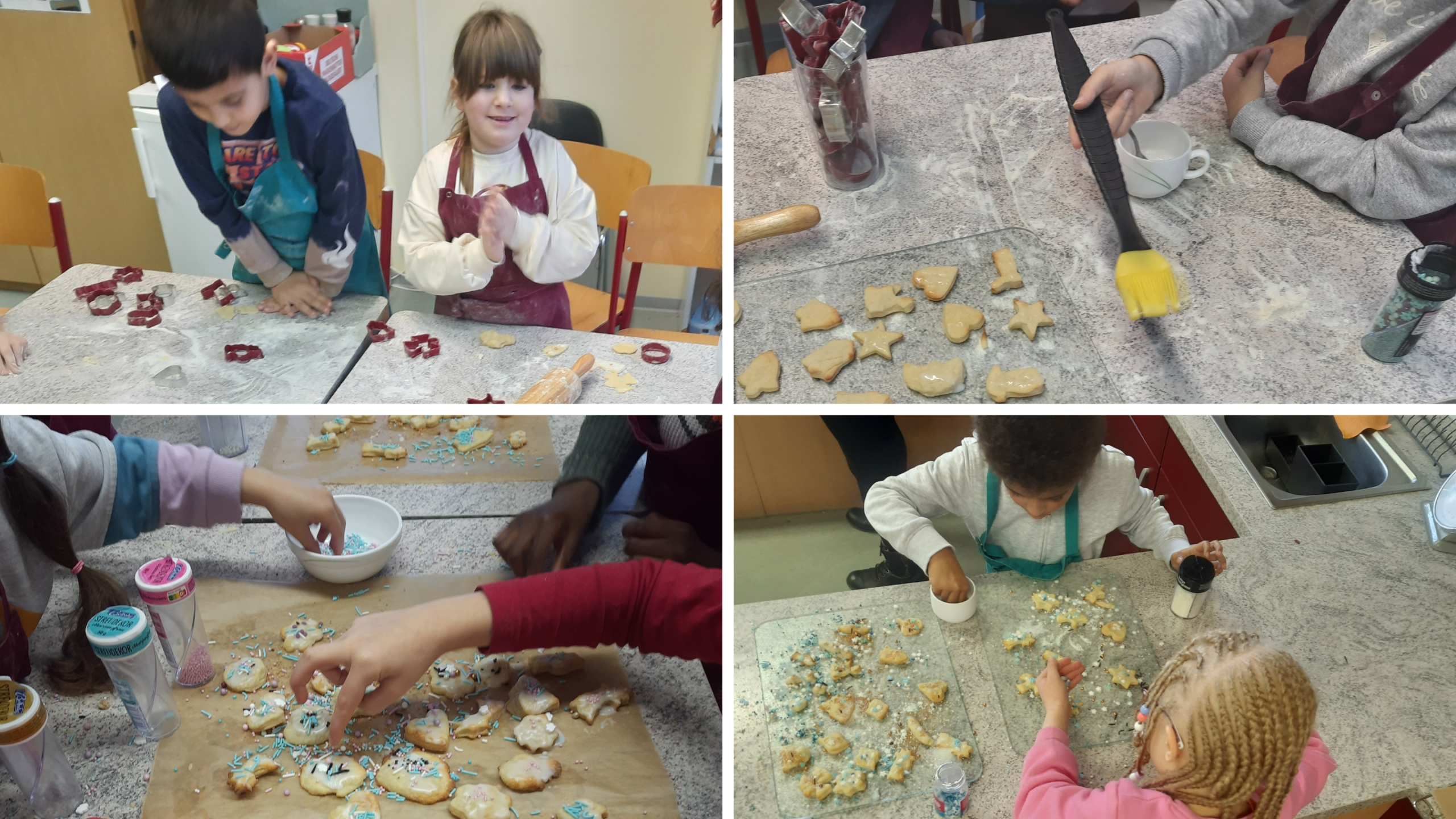 In der Vorweihnachtszeit durften wir einen besonderen Besuch begrüßen: Die Erstklässlerinnen und Erstklässler der Gebrüder-Grimm-Grundschule waren bei uns zu Gast, um gemeinsam Plätzchen zu backen und eine schöne Zeit miteinander zu verbringen. Unter der Leitung von Frau Miethig wurde mit großer Begeisterung geknetet, ausgestochen, verziert und anschließend natürlich auch verkostet.