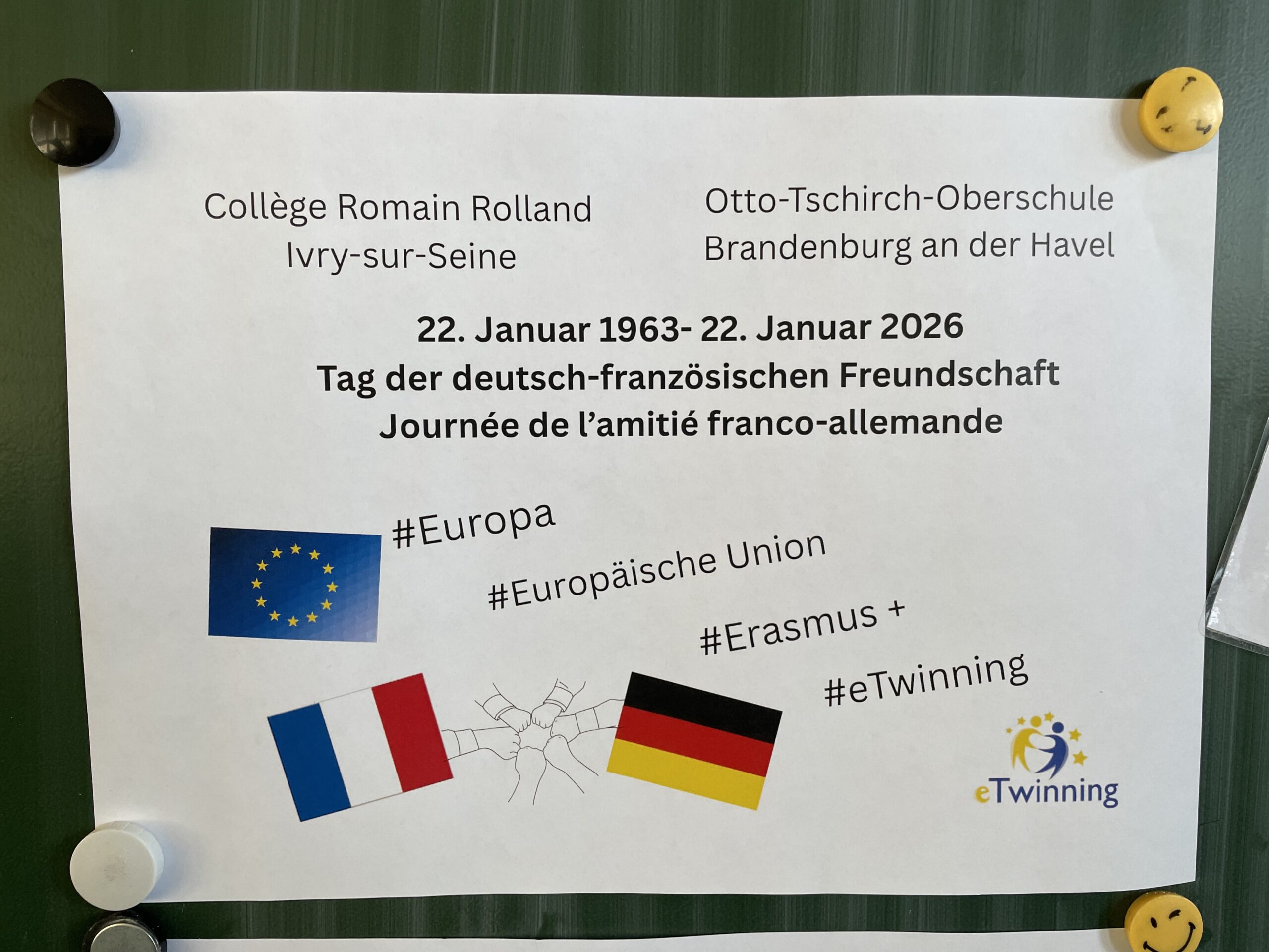 In diesem Jahr konnten auch die Schülerinnen und Schüler der 9. Klasse der Otto-Tschirch-Oberschule diese besondere Freundschaft aktiv erleben und zelebrieren. Seit Oktober des vergangenen Jahres verbindet ein gemeinsames Projekt die Französisch-Wahlpflichtkurse der Schule mit dem Collège Romain Rolland in Brandenburgs Partnerstadt Ivry-sur-Seine.